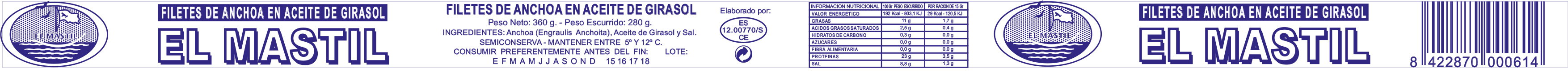 ANXOVA FIL. OLI GIRASOL (EL MASTIL) 6/650 TERRINA DE 100u.